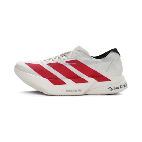 Artikelnummer: JR6363 Produktart: Wettkampf-Laufschuhe Kollektionen: adidas Adizero Adios Pro Farbe: Weiß Geschlecht: Herren Marke: adidas Schuhtyp: Neutral Dämpfung: Durchschnittlich / viel Vorfußhöhe: 33 mm Absatzhöhe: 39 mm Sprengung: 6 mm Reaktionsfähigkeit: Viel Unterstützung: Durchschnittlich Gewicht: 205 g Platte: Carbonplatte Breite: Normal Gewicht: 200-300 gramm Bauhöhe: 30-40mm (Hoch)