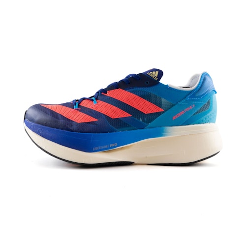 Unter Vorderfuß und Ferse wurde etwas Gummi hinzugefügt, um auf nassen Straßen eine Extraportion Grip zu gewährleisten. Dieser Gummi verleiht den Schuhen auch langlebigere Eigenschaften. Der adidas Adizero Prime X ist ein superschneller Wettkampf-Laufschuh, der speziell für das Laufen langer Distanzen bei hohem Tempo entwickelt wurde.