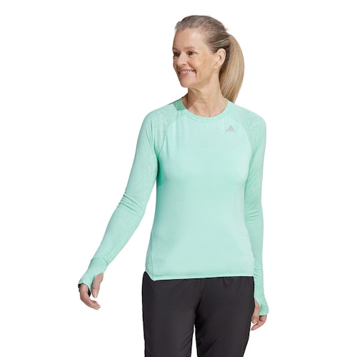Artikelnummer: HR5692 Produktart: Langarm-Laufshirts Passform: Enge Passform Eigenschaften: Reflektierend Farbe: Blau Geschlecht: Damen Marke: adidas