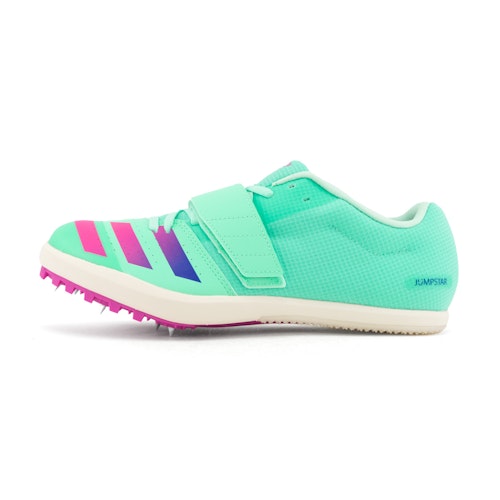 Der adidas Jumpstar für seine neutralen Spikes. Die Spikes sind speziell für die Sprungdisziplinen in der Leichtathletik konzipiert. Das leichte Mesh-Obermaterial bietet eine hohe Atmungsaktivität. Die Klettschnürung am Mittelfuß sorgt für ein gutes Lockdown-Gefühl und zusätzlichen Halt am Mittelfuß.