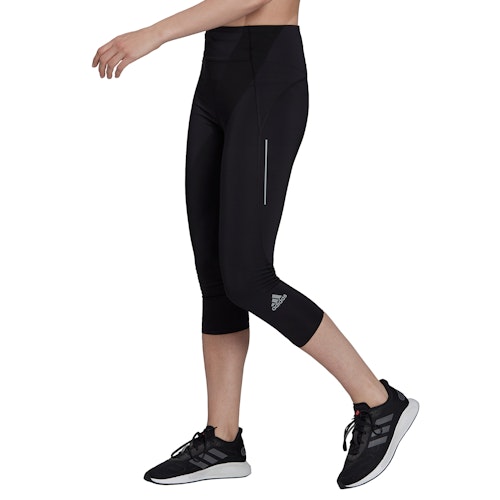 Artikelnummer: H13250 Produktart: 3/4 Tights Funktionen: Kordelzug, Tasche Passform: Enge Passform Eigenschaften: Reflektierend Farbe: Schwarz Geschlecht: Damen Marke: adidas Material: 72% Recyceltes Polyester, 28% Elasthan