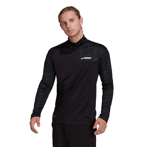 Das adidas Terrex Multi Half Zip Shirt ist ein Langarm-Laufshirt. Mit dem halblangen Reißverschluss hast du die Belüftung selbst in der Hand. Die verschobene Schulternähte gewährleisten noch mehr Komfort, z.B. beim Lauf mit einem Rucksack. Das feuchtigkeitsabsorbierende Aeroready-Material sorgt dafür, dass du dein Lauftraining trocken und entspannt absolvieren kannst. Dank der Polygiene-Technologie werden unangenehme Gerüche vermieden.