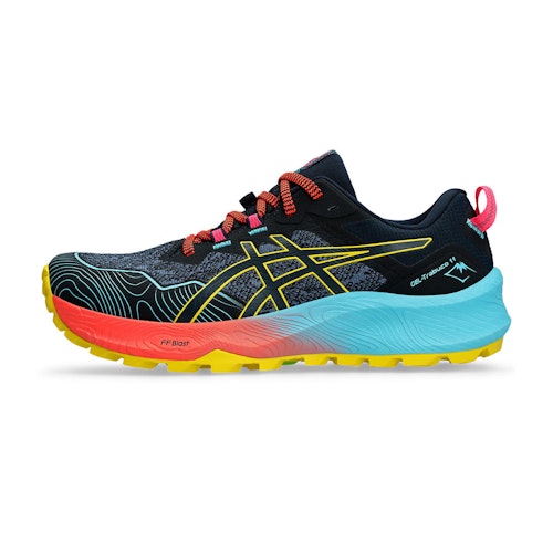 Der ASICS GEL-TRABUCO 11 ist Ihr idealer Schuh, wenn Sie einen zuverlässigen Allround-Trailschuh suchen. Dieses Modell zeichnet sich durch seinen vielseitigen Charakter aus; Alle Distanzen und Trainingsarten können mit diesem Allrounder absolviert werden. Lassen Sie sich mit diesem zuverlässigen Trailschuh von keinem Hindernis aufhalten! ZwischensohleDieses Modell verfügt über eine FF BLAST™-Dämpfung. Dieser Schaumstoff ist leicht und bietet Ihnen eine elastische, energiegeladene Polsterung. Ergänzend zum Schaumstoff in der Zwischensohle hat ASICS seine bekannte GEL™-Technologie in der Ferse hinzugefügt. Diese Technologie sorgt dafür, dass jeder Stoß bei jedem Schritt absorbiert wird und sorgt so für eine komfortablere Fersenlandung. ObermaterialDank des Mesh-Obermaterials ist dieser Schuh sehr atmungsaktiv. Darüber hinaus besteht das Obermaterial aus Synthetik mit einer Schutzschicht aus TPU, was den Schuh verschleißfest und für unwegsames Gelände geeignet macht. Das Obermaterial besteht aus recycelten Materialien. Auf diese Weise versucht ASICS unter anderem, seine Produkte immer nachhaltiger zu gestalten. Das Obermaterial des GEL-TRABUCO besteht aus leichtem Mesh, das Feuchtigkeit vom Fuß wegleitet und Sie beim Gehen kühl und trocken hält. Das Netz besteht teilweise aus recycelten Materialien. Die Schuhlippe verfügt über eine Schnürsenkeltasche zur sicheren Aufbewahrung von Schnürsenkeln. AussensohleDie führende ASICSGRIP™-Technologie sorgt dank einer Kombination aus Gummi und speziell entwickelten Stollen für perfekten Halt auf allen Oberflächen. Sie erleben eine bessere Traktion auf verschiedenen Oberflächen. Damit können Sie viele Kilometer laufen, sowohl auf der Straße als auch in der Natur! Ziehen Sie den ASICS GEL-TRABUCO 11 an und schon sind Sie bereit für Ihren Trailrun!