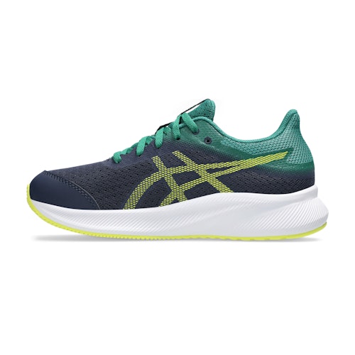 Die Gummilaufsohle des Schuhs sorgt beim Laufen für guten Halt und Traktion. Bestellen Sie und entdecken Sie innerhalb weniger Tage die Vielseitigkeit des ASICS Patriot 13 GS. -