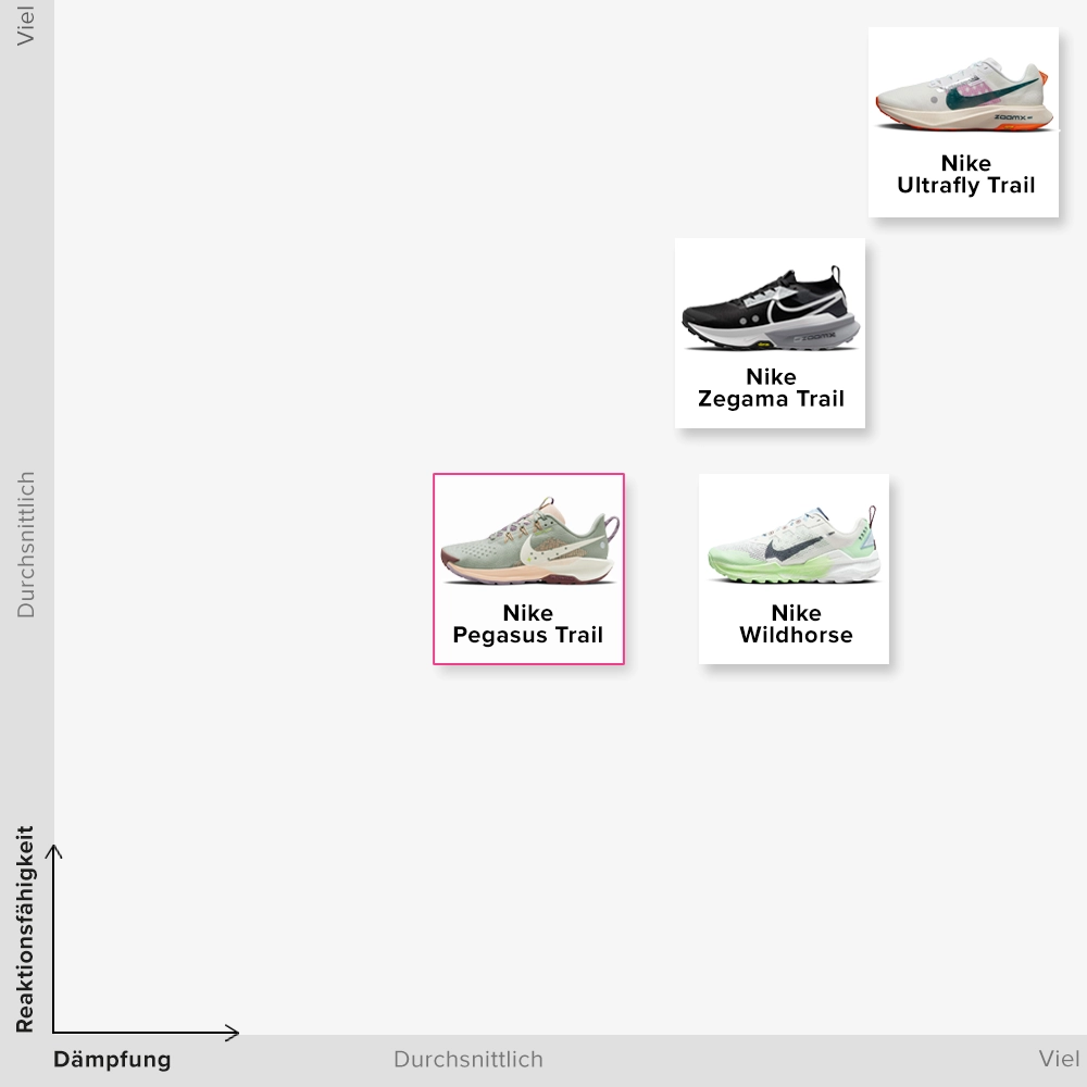 Nike hat eine umfangreiche Trailrunning-Schuhkollektion für verschiedene Arten von Trailläufen. Wenn du auf der Suche nach einem leichten und wendigen Tragegefühl bist, gibt es den Terra Kiger und den Ultrafly, wobei letzterer mit dem reaktionsfähigsten Schaumstoff und einer Carbonplatte ausgestattet ist. Für Trailrunning-Anfänger gibt es auch den Juniper Trail, der sogar noch etwas robuster als der Pegasus Trail ist. Für die längeren und härteren Trails gibt es den Wildhorse und den Zegama, wobei der Zegama etwas reaktionsfähiger ist.