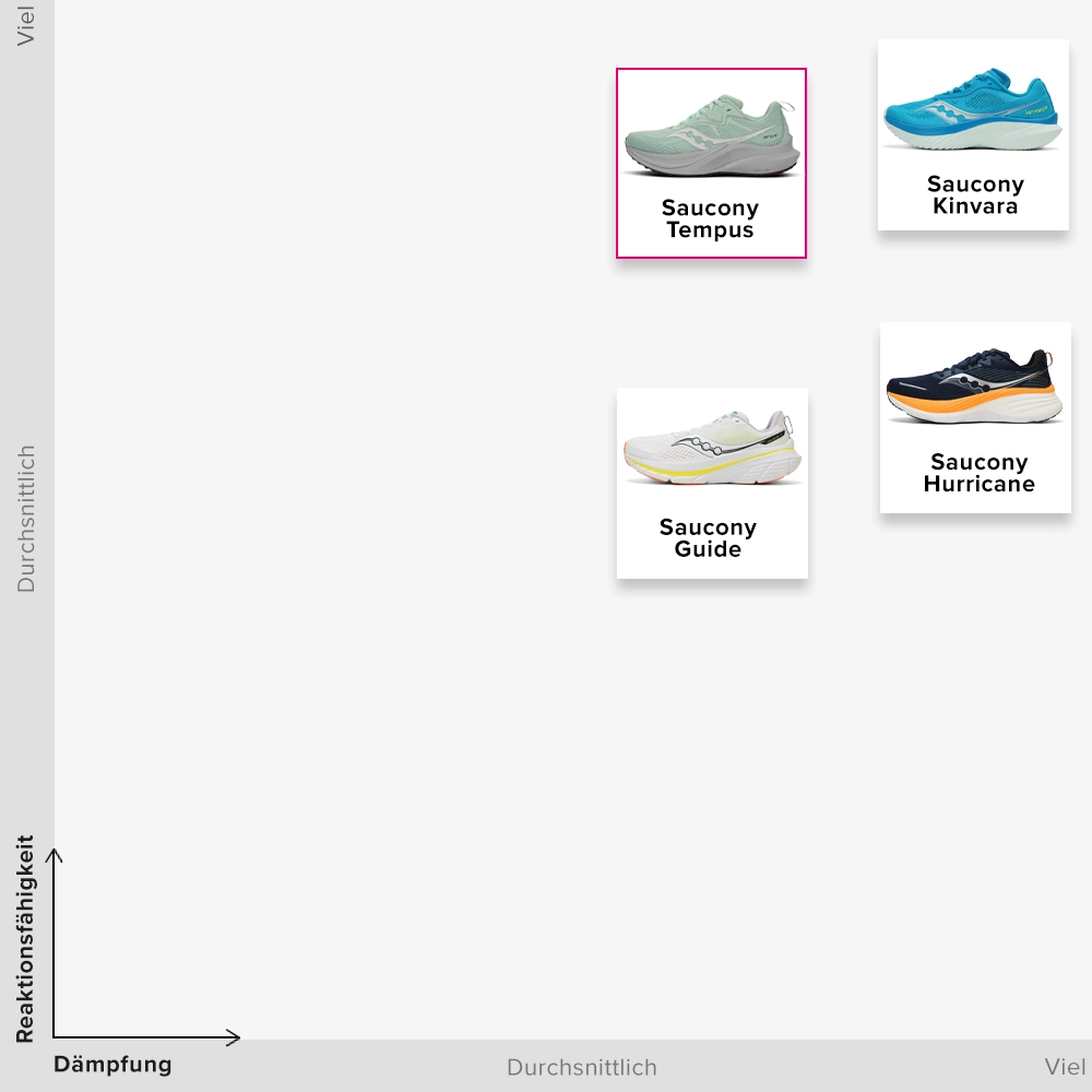 Wer an einen leichten Antipronations-Schuh denkt, denkt schnell an den Saucony Guide. Der neueste Guide ist auch ziemlich leicht und hat genau das gleiche Gewicht wie der Tempus. Worin besteht also der Unterschied? Die Zwischensohle des Guides besteht vollständig aus PWRRUN-Schaum und hat eine geringere Sprengung. Dadurch eignet sich der Guide eher für ruhige Läufe, während der Tempus aufgrund seiner Reaktionsfähigkeit bei höheren Geschwindigkeiten glänzt.