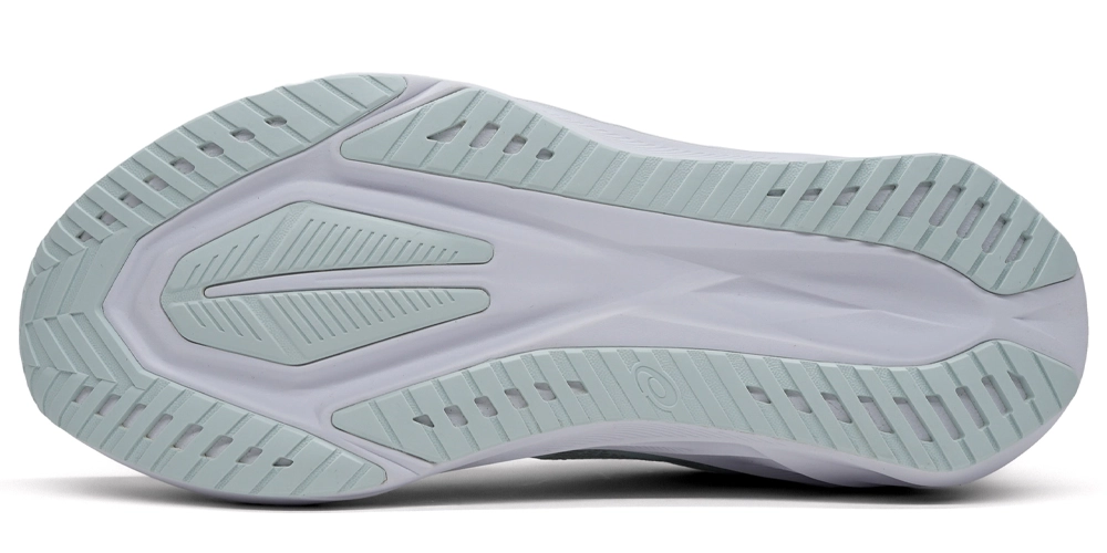 Das vom Trampolin inspirierte Design sorgt für zusätzliche Sprungkraft bei jedem Schritt. AHAR-Gummi mit niedriger Dichte für optimale Griffigkeit und Abriebfestigkeit.