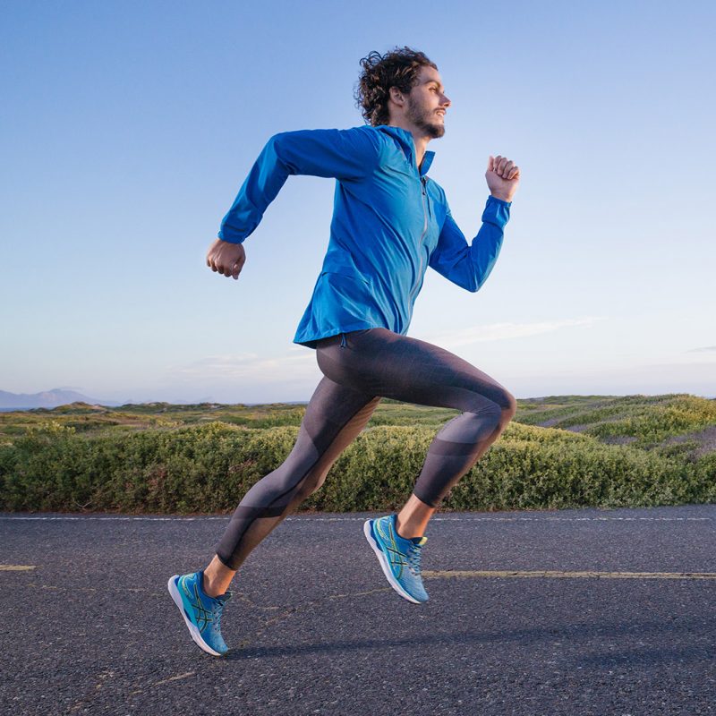 Overdelen er vævet, så den omslutter tæt i længden af skoen, men tillader materialet at strække sig i bredden omkring forfoden i det øjeblik dine fødder begynder at udvide sig under dit løb.