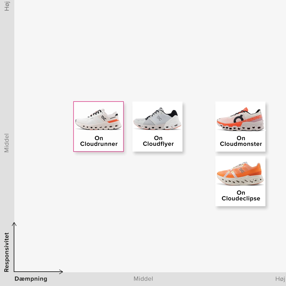 On Cloudrunner 2 og On Cloudflyer 4 er to super gode allround-sko til neutrale løbere, der godt kunne bruge lidt støtte. De to modeller giver dog en forskellig løbeoplevelse. Hvis du løber distancer på 10 km eller mere i middel til høj hastighed, er Cloudflyer 4 et godt valg. Denne sko har en plastplade (Speedboard), der ikke kun giver stabilitet, men driver dig også fremad, så du hurtigt kan øge dit tempo. Takket være de bredere ’clouds’ giver skoen også lidt mere komfort, hvilket er ideelt til længere distancer. Hvis du er på udkig efter en god allround-sko med blød og responsiv støddæmpning, som er velegnet til mellemlange distancer og giver dig mulighed for at øge tempoet jævnt, skal du vælge Cloudrunner 2.