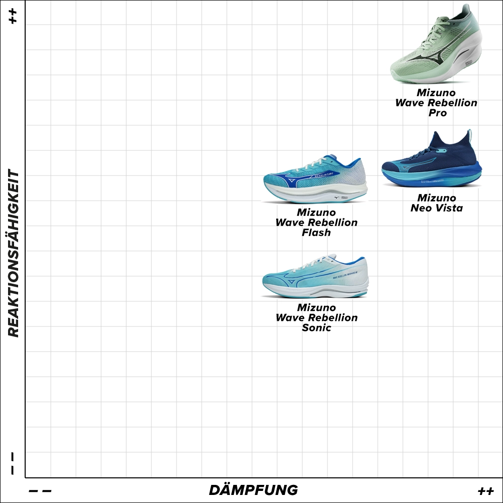 Vil du løbe hurtigere? Så har Mizuno flere muligheder til tempotræning og konkurrenceløb. Mizuno Wave Rebellion Pro 3 er løbeskoen med carbonplade og superfoam til konkurrenceløb, mens Mizuno Wave Flash er temposkoen med en glasfiberplade. Wave Rebellion Pro 3 er bedst egnet til løbere, der vil løbe et maraton på under 3 timer, mens Wave Flash er lidt mere stabil, hvilket gør den til det bedste valg for løbere, der løber maraton på omkring eller over 3 timer. Som erfaren løber kan du købe begge sko, så din sko-rotation er komplet.