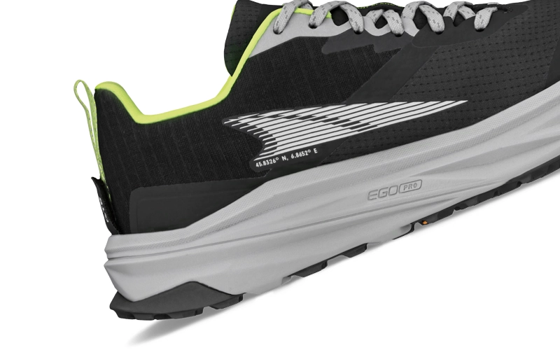 | * Tyndt polstret pløs og krave * Altra EGO™ PRO og EGO MAX-mellemsål * StoneGuard i forfoden * Vibram® LiteBase og Megagrip-ydersål |