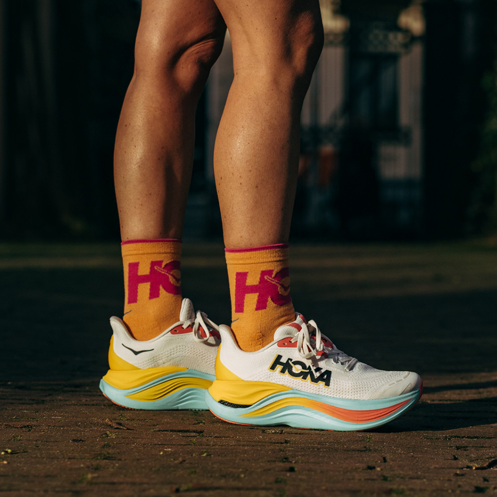 HOKA Skyward X løfter fleksibilitet og komfort til det ultimative. Skoen har en revolutionerende støddæmpning, der komprimerer og returnerer energi ved hvert skridt. Det fleksible og yderst elastiske PEBA-skum er placeret så tæt på foden som muligt. Sammen med carbonpladen sikres, at hvert skridt føles responsivt og energisk. Desuden giver skoens Super Critical EVA-dæmpning stabilitet, så du kan løbe kilometer efter kilometer så let som en leg.