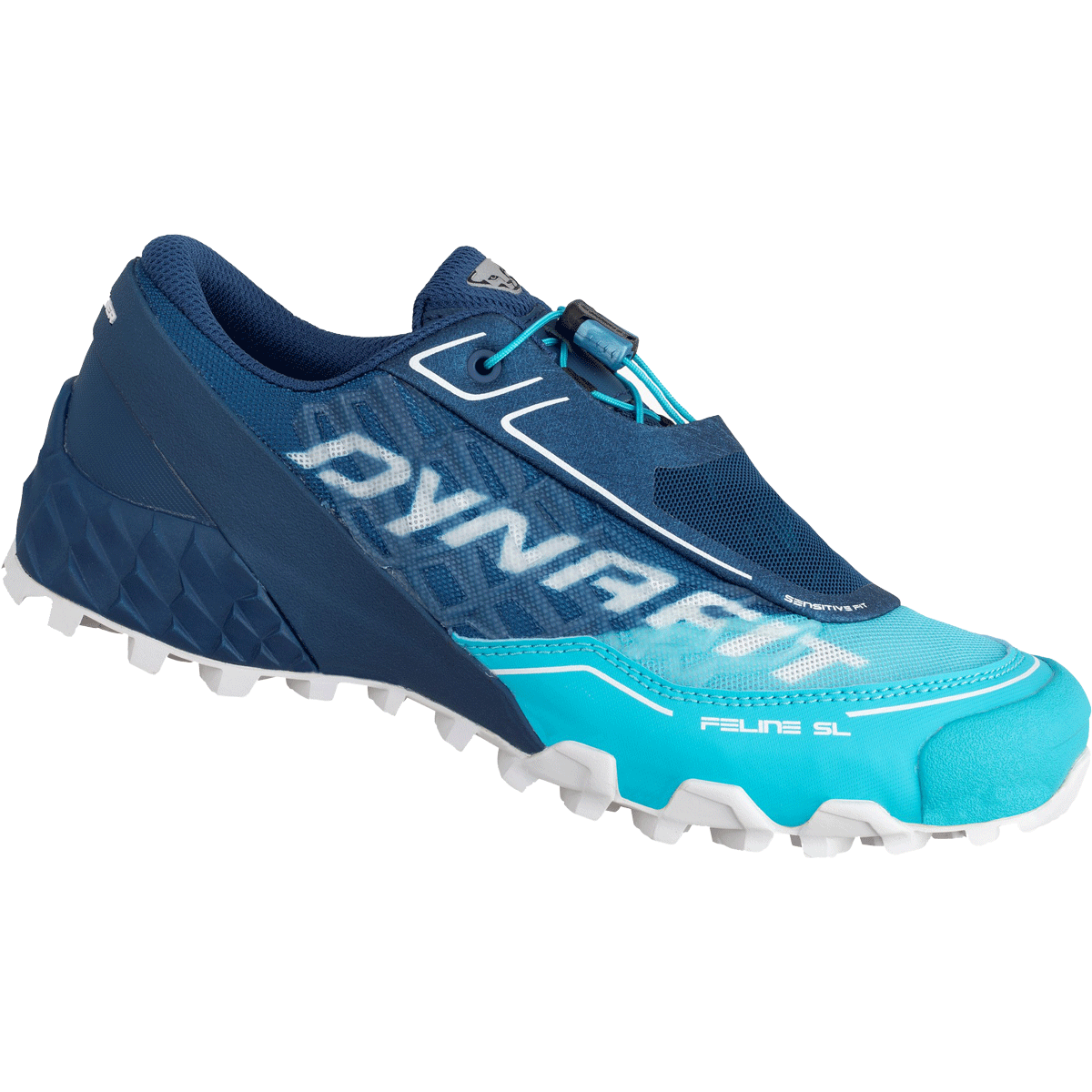 The Dynafit Feline SL is truly an all-purpose trail shoe. This trail shoe provides traction even on soft and muddy terrain. The Feline SL is particularly suitable for middle distances. The shoe is famed for it’s high responsiveness, and for offering ideal traction and balanced cushioning.