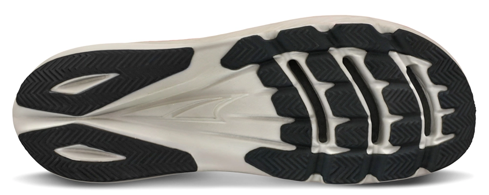 Altra a considérablement amélioré la durée de vie de la Vanish Carbon 2. Le modèle précédent présentait une usure rapide au bout de 160 km. Grâce à la semelle d’usure en caoutchouc qui se situe à la fois au niveau du talon et de l’avant-pied, ce problème a été résolu. À l’avant de la chaussure, trois rainures de flexion ont été ajoutées pour garantir un déroulement souple à partir de l’avant-pied.