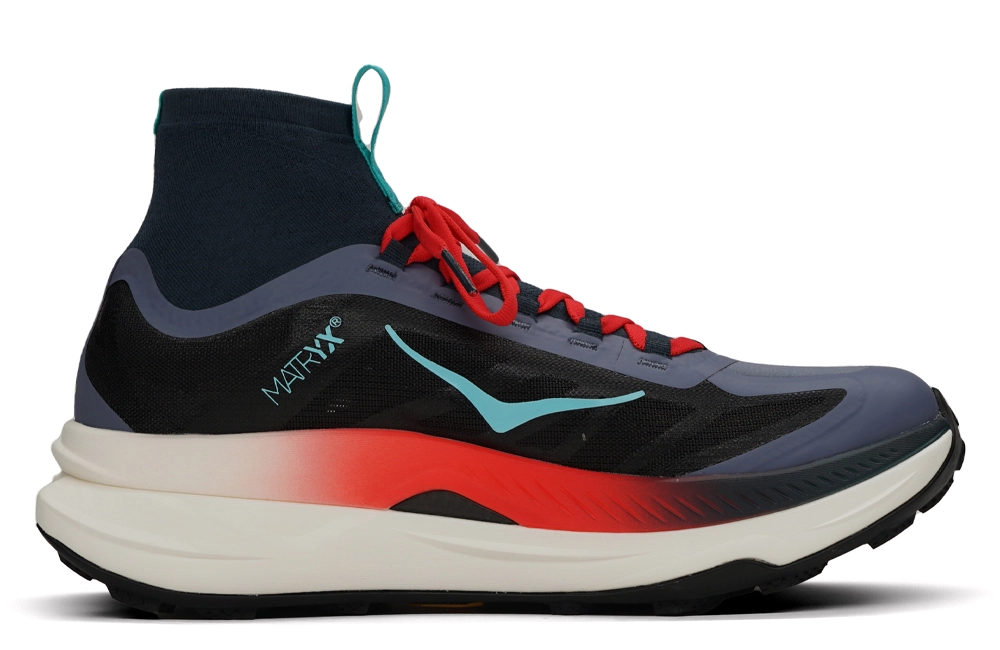 Lancée en 2022, la HOKA Tecton X a été l’une des premières chaussures de trail à intégrer une plaque de carbone. Elle comportait deux plaques de carbone parallèles qui assuraient la propulsion vers l’avant tout en offrant une grande flexibilité latérale. Sur les sentiers, il est très important que la cheville et le pied puissent bouger librement.
