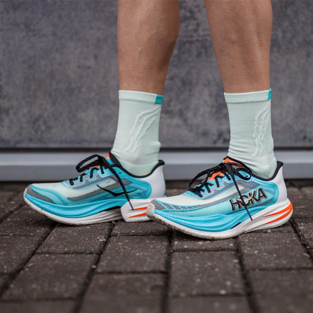 Avis aux compétiteurs ! La HOKA Cielo X1 2.0 est conçue pour repousser les limites et battre des records. Encore plus légère que son prédécesseur, cette chaussure carbone ultralégère offre une propulsion explosive grâce à une plaque en carbone, un rocker avant-pied agressif et près de 40 mm de mousse PEBA réactive. Le résultat ? Vitesse maximale et retour d’énergie inégalé. Que vous couriez un 10 km, un semi-marathon ou un marathon, la Cielo X1 2.0 vous donne toujours la sensation d’un jour de course.