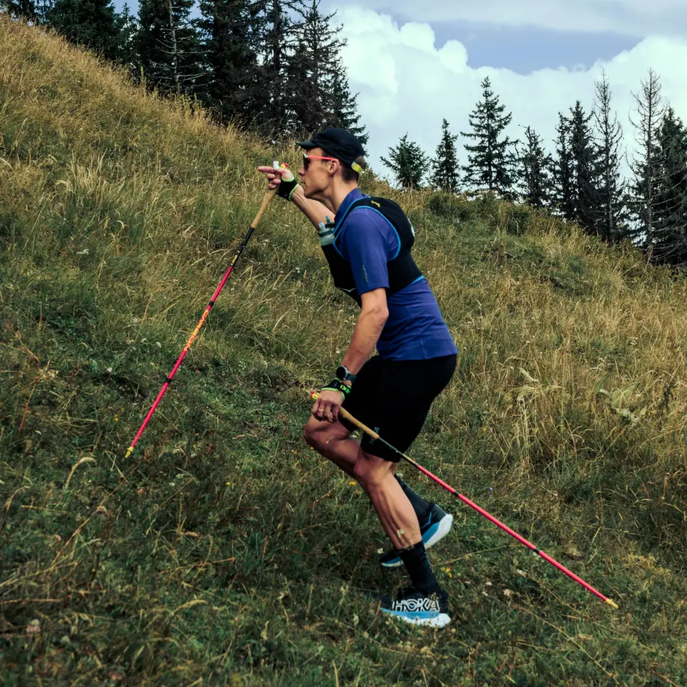 Das Obermaterial des Rocket X Trail ist auf Geschwindigkeit ausgelegt. Obwohl man durch das Material hindurchsehen kann, ist es fein genug, um Schmutz draußen zu halten. Der Schuh verfügt außerdem über Schlaufen zum Anbringen von Gamaschen.
