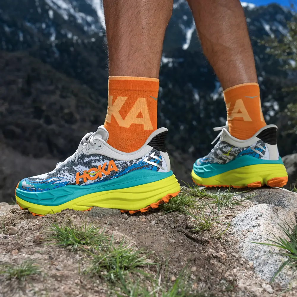 Mit der höchsten Stapelhöhe in der HOKA-Trail-Linie bietet der Stinson ATR ein echt weiches Dämpfungserlebnis unter den Füßen, selbst auf unwegsamem Gelände.