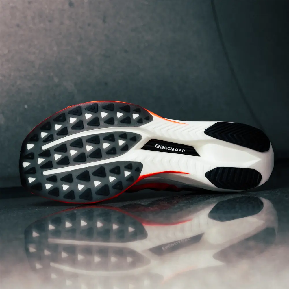 Die FuelCell-Zwischensohle besteht vollständig aus PEBA-Schaum und bietet eine explosive Energierückgabe. In Kombination mit der Energy Arc-Technologie – sprich: strategische Hohlräume und eine Carbonfaserplatte – sorgt dies für ein vorwärtstreibendes Gefühl bei jedem Schritt.