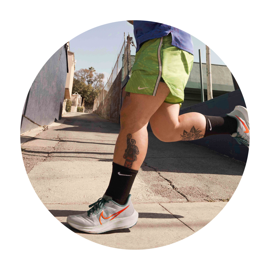 Lufttrycket är extremt viktigt när man cyklar. När du cyklar på stranden behöver man lågt lufttryck för att däcken ska få så bra grepp som möjligt, och när man cyklar på asfalt måste lufttrycket i däcken vara väldigt högt. När det gäller löpning är det ännu inte så vanligt att man utnyttjar lufttryck, men Nike gör detta. Från och med version 37 har Nike Pegasus försetts med en lyhörd Air Unit i främre delen av foten. Air Unit fjädrar in vid nedtramp och fjädrar tillbaka vid avtramp. I den senaste Nike Pegasus 39 finns denna Air Unit inte bara i framfoten utan även i hälen. De här två “luftkuddarna” har samma lufttryck och fungerar tillsammans med Nike React-skummet för en smidig och kraftfull övergång från häl till tå. Air Units innebär inte bara mjuk dämpning utan ger också massor av energiåtergivning. Tack vare de här funktionerna kan du använda Nike Pegasus för både en snabb femkilometare och en rofylld lång uthållighetsrunda på 21 km.