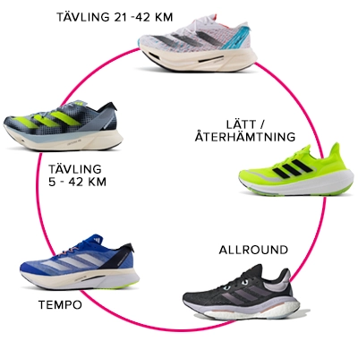 Skorotation innebär att man växlar mellan minst två olika par olika löparskor för att förebygga skador. Dessutom är varje löparsko utvecklad för ett specifikt ändamål. Nike Air Zoom Structure 25 är den perfekta löparskon för dina dagliga löpturer och för att springa många lugna kilometer. Om du letar efter lite mer dämpning för en återhämtningsrunda finns Invincible 3 med det mjuka ZoomX-materialet. Zoom Fly 5 är en bra träningspartner för tempoträning inför halvmaraton eller maran. Fördelen med Zoom Fly 5 är att den också är ganska stabil. För snabba tävlingar har Nike Vaporlfy Next% 3. Den är superlätt och extremt lyhörd, men förvänta dig inte mycket stabilitet. Så använd den främst till tävling och tempoträning.