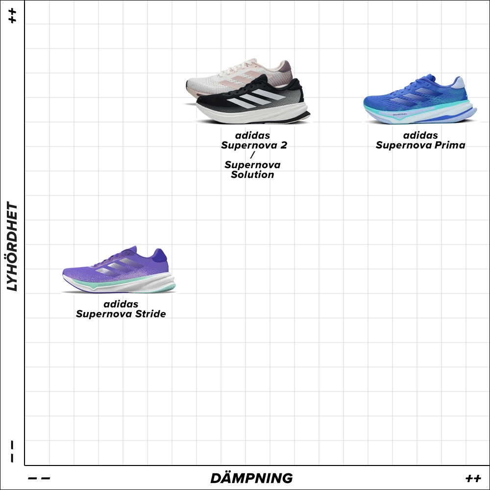 Det finns en adidas Supernova löparsko för varje typ av löpare, nämligen: