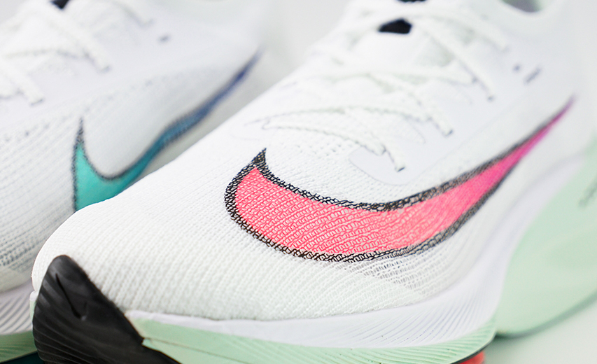 The Nike Air Zoom Alphafly NEXT% is full of new technologies and innovations. The most notable are the two ultra-responsive Air Zoom units under the forefoot and some additional ZoomX foam in the heel. With this shoe you’ll fly!