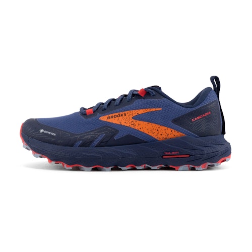 Mit dem Cascadia-Obermaterial sind Sie bereit für Ihr nächstes Trail-Abenteuer. Das Mesh-Obermaterial ist bequem und hat zusätzlich den Vorteil, dass es eine Belüftungsfunktion hat. Die Verstärkung an den Zehen schützt Ihre Füße vor Stößen und scharfen Hindernissen. Neben dem zusätzlichen Schutz an den Zehen verfügt das Obermaterial auch über einen transparenten Schutzblech und eine Gore-Tex®-Membran, um Sie vor Schlamm und Regenschauern zu schützen und Ihre Füße gleichzeitig kühl zu halten. Mit dem Cascadia-Obermaterial sind Sie bereit für Ihr nächstes Trail-Abenteuer. Das Obermaterial besteht aus einem Mesh-Obermaterial, das eine Belüftungsfunktion hat und für ein attraktives Erscheinungsbild sorgt. Der Zehenschutz bietet Schutz vor Stößen und scharfen Hindernissen. Zudem hat Schweißdampf die Möglichkeit zu entweichen, der Schuh ist jedoch durch die Gore-Tex®-Membran vor Regen geschützt. Die plissierte Zunge dieses Schuhs ist auf beiden Seiten mit dem Obermaterial verbunden, wodurch verhindert wird, dass Schmutz in den Schuh eindringt und die Zunge zentriert bleibt.