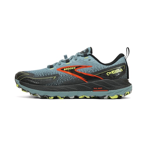 Der Cascadia 18 verfügt über den DNA LOFT v2-Schaum, den Schaum, der sich Ihrem Laufstil anpasst. Der Schaum ist extrem leicht und Brooks hat die richtige Balance zwischen der richtigen Luft- und Gummimenge im Schaum gefunden. Das Ergebnis ist ein reaktionsfreudiger Schaumstoff mit guter Dämpfung, der für einen sanften Übergang von der Ferse bis zu den Zehen sorgt. Der Cascadia 18 verfügt über das Trail Adapt System, das für zusätzliche Kontrolle und Stabilität beim Trailrun sorgt. Das System besteht aus drei Elementen: dem integrierten DNA LOFT v2-Schaum, einer schützenden und treibenden Felsplatte zwischen zwei Schichten DNA LOFT v2 und einem fortschrittlichen Außensohlensystem. Die drei Elemente arbeiten eng zusammen, um einen Schuh zu schaffen, der mit unterschiedlichem Gelände zurechtkommt und sich an Ihren Laufstil anpasst.