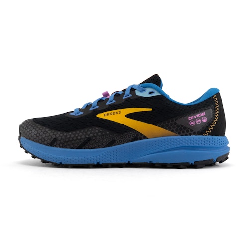 Der Brooks Divide 3 ist ein neutraler Trailrunning-Schuh. Dieser Schuh gehört zur 'Run Visible'-Kollektion und verfügt über zusätzliche reflektierende Elemente, um die Sichtbarkeit im Dunkeln zu erhöhen. Der Divide 3 eignet sich ideal für präparierte Trails und Übergänge von der Straße ins Gelände. Ein perfekter Schuh für alle Läufer, die gerne im Park bzw. abwechslungsreichem Terrain laufen oder mit dem Trailrunning beginnen möchten. Das neue Air-Mesh-Obermaterial verleiht Struktur und punktet mit guter Atmungsaktivität. Der TPU-Spritzschutz rundum das Obermaterial schützt den Fuß beim Laufen in unwegsamem Gelände.