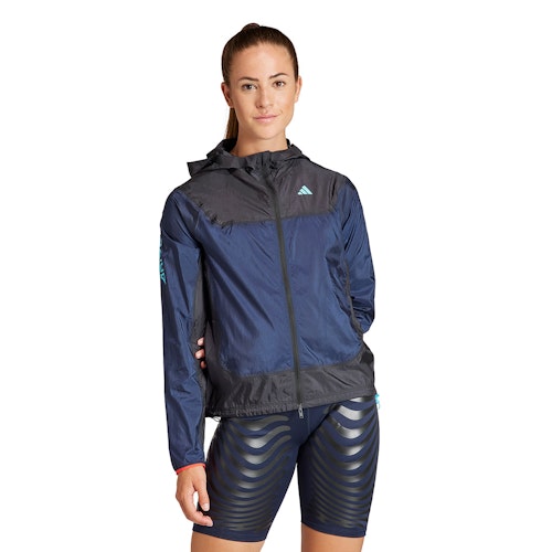 Adizero Warm Jacket er en ultralet og behagelig løbejakke med hætte. Wind.RDY-teknologien beskytter dig under blæsende forhold, så du også komfortabelt kan løbe dit løb på efterårsdage. Fremstillet af genbrugsmateriale.