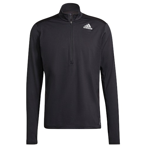 Adidas Own The Run 1/2 lynlås til mænd giver dig mulighed for at løbe behageligt både om sommeren og vinteren. Med de lange ærmer forhindrer du dine arme i at køle ned. Toppen transporterer fugt effektivt væk. Climawarm-teknologien har lette termiske egenskaber og holder dig varm under koldere forhold. Et reflekterende adidas logo er monteret på venstre bryst. En lynlås ved kraven giver dig mulighed for at styre ventilationsniveauer.