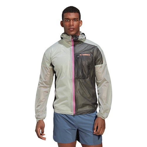 Terrex Agravic Rain RDY Jacket er en behagelig jakke. Jakken er meget let og beskytter dig mod regnen. Dette holder dig tør uden at tynge dig. Materialet giver en masse bevægelsesfrihed. Brystlommen med lynlås giver mulighed for sikkert at bære mindre genstande under din løbetur.
