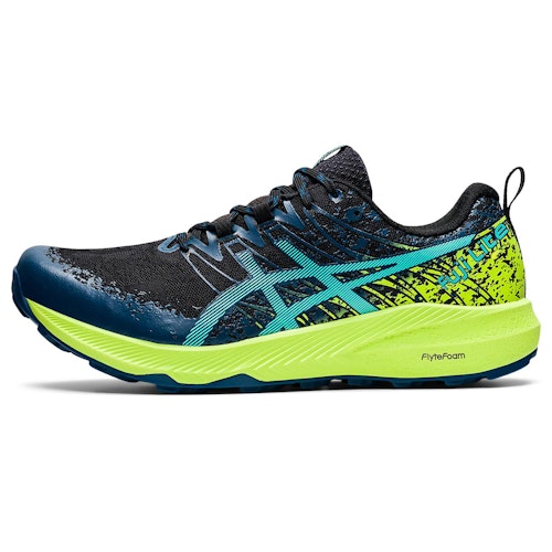 FLYTEFOAM mellemsålen er lavet af genbrugsmaterialer. Det giver energi tilbage og dæmper stød effektivt. Dette er især velkomment, når du løber trailløb. Stød absorberes og trykket fordeles over fødderne. Trail Specific ydersålen med ASICS GRIP-teknologi har klamper og riller, der giver greb og trækkraft, når du klatrer og falder. Fuji Lite 2 giver greb på våde såvel som tørre overflader.