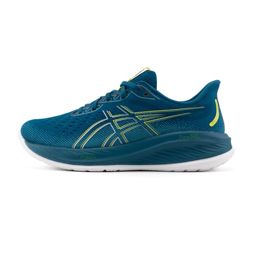 Ydersålen på denne sko består af to dele. AHARPLUS™ bruges under hælen. Dette materiale er tre gange så slidstærkt som en almindelig gummiydersål. AHARLO™ bruges under mellemfoden og forfoden. Dette materiale er dobbelt så holdbart som almindeligt gummi og vejer på grund af sin svampede struktur også 50 % mindre. Ved at kombinere disse teknologier har ydersålen fremragende greb og trækkraft. ASICS Gel Cumulus 26 hjælper dig med at nå dine mål! -