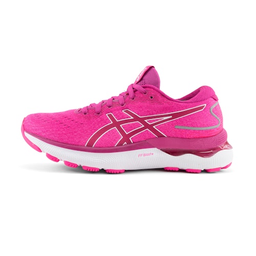 SKU: 1012B201-600 Varegruppe: All-round løbesko Kollektioner: ASICS Gel Nimbus Farve: Lyserød Køn: Dame Mærke: ASICS Skotype: Neutral Dæmpning: Moderat / maksimum Forfodshøjde: 25 mm Hælhøjde: 28 mm Offset: 13 mm Lydhørhed: Minimum / moderat Støtte: Moderat Bredde: Normal