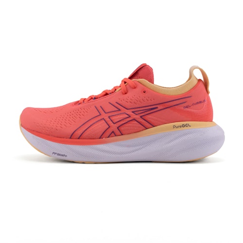 SKU: 1012B356-700 Varegruppe: All-round løbesko Kollektioner: ASICS Gel Nimbus Farve: Lyserød Køn: Dame Mærke: ASICS Skotype: Neutral Dæmpning: Moderat / maksimum Offset: 8 mm Lydhørhed: Minimum / moderat Støtte: Moderat Bredde: Normal