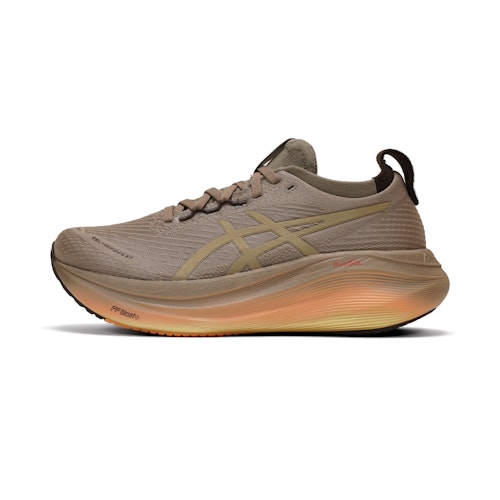 SKU: 1012B816-020 Varegruppe: All-round løbesko Kollektioner: ASICS Gel Nimbus Farve: Brun Køn: Dame Mærke: ASICS Skotype: Neutral Dæmpning: Maksimum Forfodshøjde: 35,5 mm Hælhøjde: 43,5 mm Offset: 8 mm Lydhørhed: Minimum / moderat Støtte: Moderat Vægt: 265 g Bredde: Normal