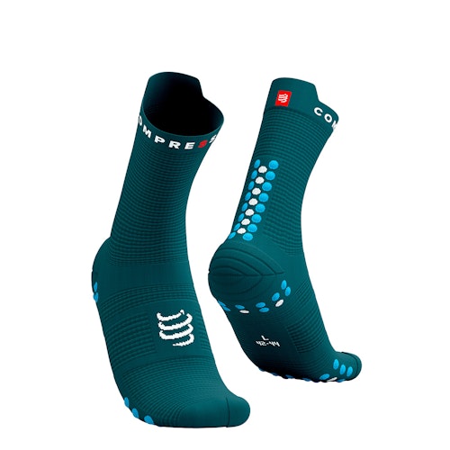 Pro Racing Socks V4.0 Run High er komfortable sokker med høj kompression, som er ideelle til din daglige løbetur. De indeholder silikone indlæg rundt om indersiden af sømmen, der forhindrer sokken i at glide ned.
