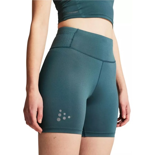 SKU: 1914600-387000 Varegruppe: Korte tights Egenskaber: Snor i talje, Høj talje, Lommer, Bred taljelinning Pasform: Slim Farve: Blå Køn: Dame Mærke: Craft Materiale: 74% genanvendt polyamid 26% elastan