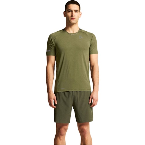 SKU: 1914589-664000 Varegruppe: Løbe T-shirts Pasform: Regular Farve: Grøn Køn: Herre Mærke: Craft Materiale: 91% genanvendt polyester 9% elastan