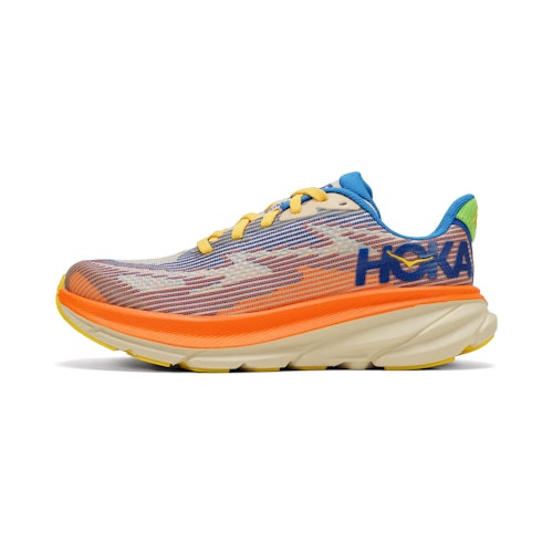 Ydersålen er lavet af zonal gummi og har en grov profil for godt greb på enhver type overflade. Zoner af slidstærkt gummi er blevet tilføjet til hælen og forfoden for forbedret holdbarhed. Ydersålens geometri er designet til at sikre iboende stabilitet og et effektivt skridt. Start din løbesession med HOKA Clifton 9 og forfølge dine mål!