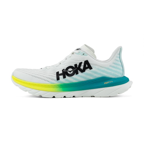 HOKA Mach 5 er en slank og komfortabel hurtig sko designet til at give løbere et forspring under træning og løb. Mach kommer til sin ret til løb op til halvmarathon-distancer og til interval- og tempotræning. Denne konkurrencesko er designet til toppræstation i hvert løb og accelererer dig til sejr!