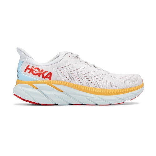 HOKA Clifton 8 Wide er neutrale løbesko. Den seneste model af den populære Clifton tilbyder en endnu blødere tur end sin forgænger. Clifton 8 er også 15 % lettere, og ydersålen er blevet forbedret og gjort mere holdbar sammenlignet med Clifton 7.