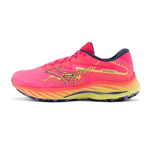 SKU: J1GD2303-24 Varegruppe: All-round løbesko Kollektioner: Mizuno Wave Rider Farve: Neon lyserød Køn: Dame Mærke: Mizuno Skotype: Neutral Dæmpning: Moderat Forfodshøjde: 26.5 mm Hælhøjde: 38.5 mm Offset: 12 mm Lydhørhed: Moderat Støtte: Moderat Bredde: Normal