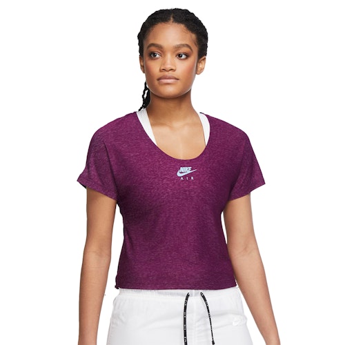 Nike Air Dri-FIT T-shirten til kvinder er en kortærmet løbetop. Toppen føles blød og let. Den anvender også fugttransporterende teknologi for en behagelig fornemmelse kilometer efter kilometer. Takket være toppens alsidige design vil du nemt være i stand til at tilpasse pasformen til dine præferencer. Toppen har Nikes Dri-FIT-teknologi, som leder transpiration væk fra huden til ydersiden af toppen, hvor den derefter kan fordampe. Kombinationen af strikmateriale sikrer en blød og fleksibel følelse. Takket være træksnoren på den nederste del af ryggen kan du justere længden på toppen.