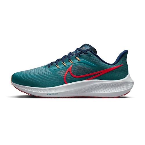 Nike Air Zoom Pegasus 39 (Extra Wide) er neutrale all-round løbesko. 'Pegasus' er Nikes ældste løbeskomodel. Også en af de mest populære. Skoene er ideelle til dit daglige løb, men kan også bruges under et udholdenhedsløb. Dens alsidighed giver dig mulighed for komfortabelt at løbe i et langsommere eller moderat tempo til dine restitutionsløb, men du kan også øge tempoet uden bekymringer under din træning. Den nye Pegasus 39 er forblevet nogenlunde tro mod det klassiske udseende af Pegasus. Skoen er lettere i toppen end Pegasus 38 og er ideel til at have på i enhver sæson. Skoen giver en støttende følelse for at holde din fod på plads.