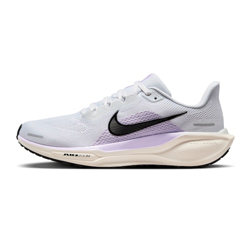 Nikes ikoniske vaffelmønster kan findes i gummiydersålen. Dette mønster giver greb på både tørre og våde overflader. Forfoden har ekstra fleksibilitet på grund af flexrillerne i ydersålen, som sikrer en jævn gang. Nike Air Zoom Pegasus 41 er den allrounder, der vil booste din løbeoplevelse! -