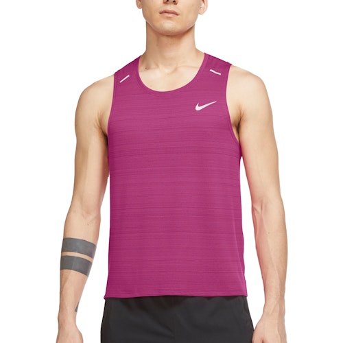 Nike Dri-FIT Miler Tank til mænd er en behagelig løbetop uden ærmer. Dri-FIT-teknologien holder dig tør under dine løbeture ved at transportere transpiration effektivt væk. Mesh-materialet giver ekstra ventilation og er meget åndbart. Slidserne i siderne sikrer fremragende bevægelsesfrihed.