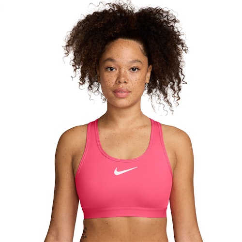 Dri-FIT Swoosh High-Support Sports BH er en behagelig sports BH med høj støtte. BH'en er velegnet til at have på under alle sportsgrene, såsom løb, aerobic, volleyball og ridning. BH'en har stor støtte og er derfor også velegnet til kvinder med større barm. Nike Dri-FIT teknologien sikrer god åndbarhed, hurtigere fordampning og en behagelig pasform.